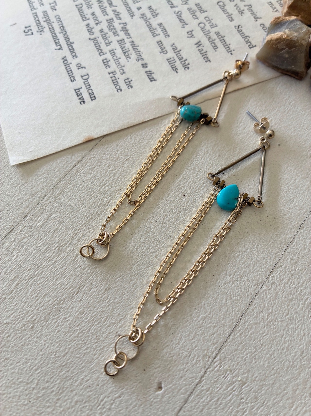 drop型のターコイズのピアス。