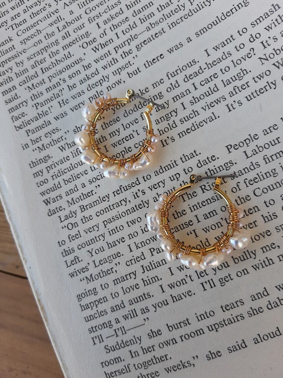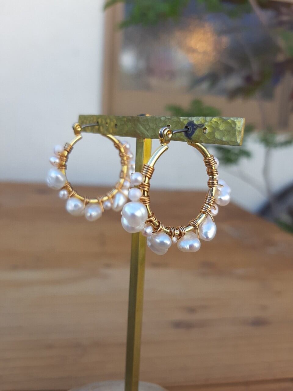 アンティークネックレスの淡水パールをリメイクして作りました。