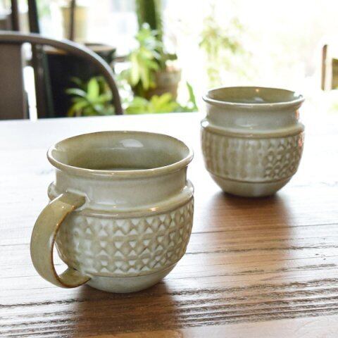 落ち着いた色合いと存在感のあるレリーフ模様が雰囲気の良い、SCANDINAVIAN(スカンジナビア)シリーズのマグカップ。