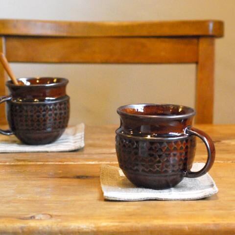 材質:炻器深い色合いと存在感のあるレリーフ模様が雰囲気の良い、SCANDINAVIAN(スカンジナビア)シリーズのマグカップ。
