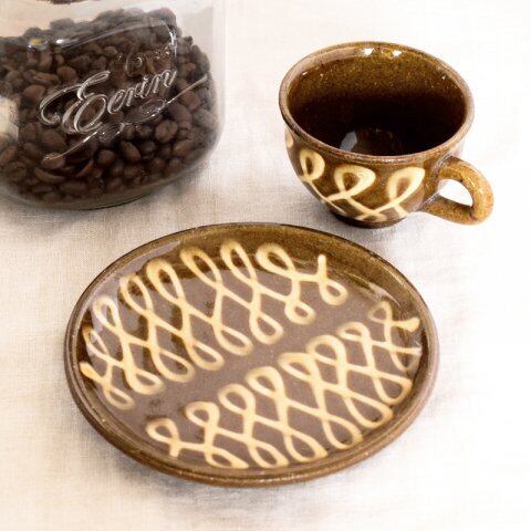 スリップウェアのデミタスカップ&ソーサ。