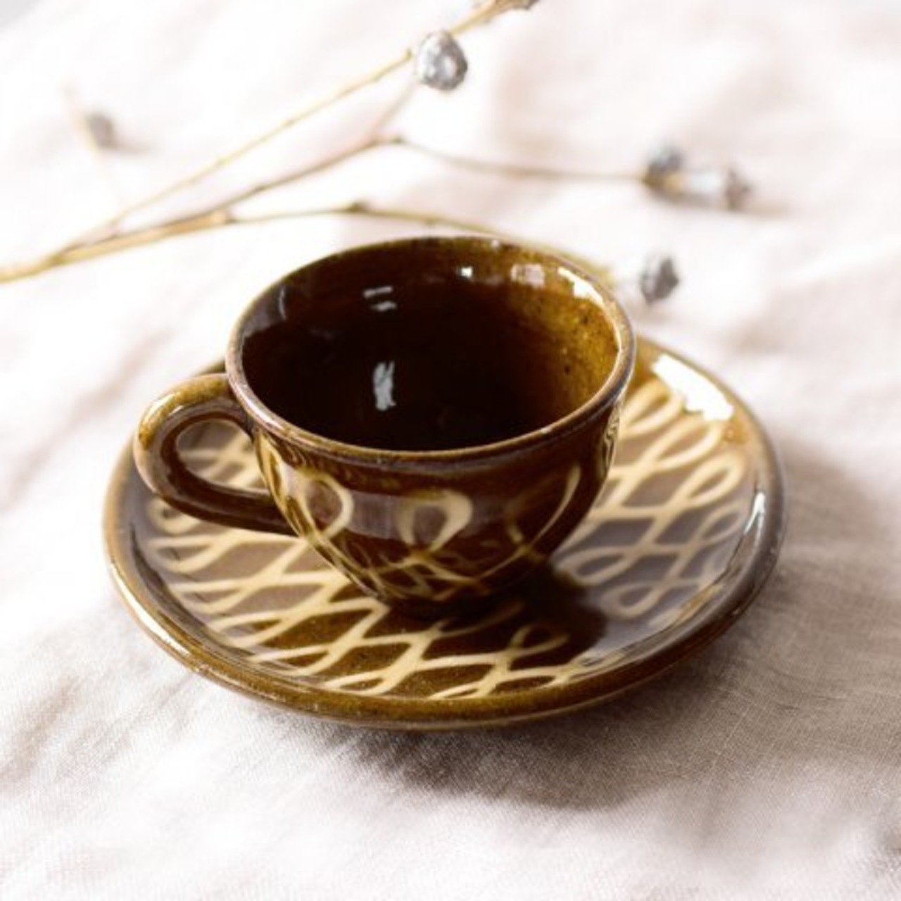 <食器 スリップウェア 骨文様 陶器製 コーヒーカップ カップ ソーサー お祝い>