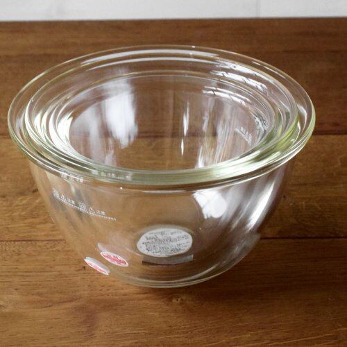 混ぜやすい、深い形状の耐熱ガラス製ミキシングボウル3個セット。