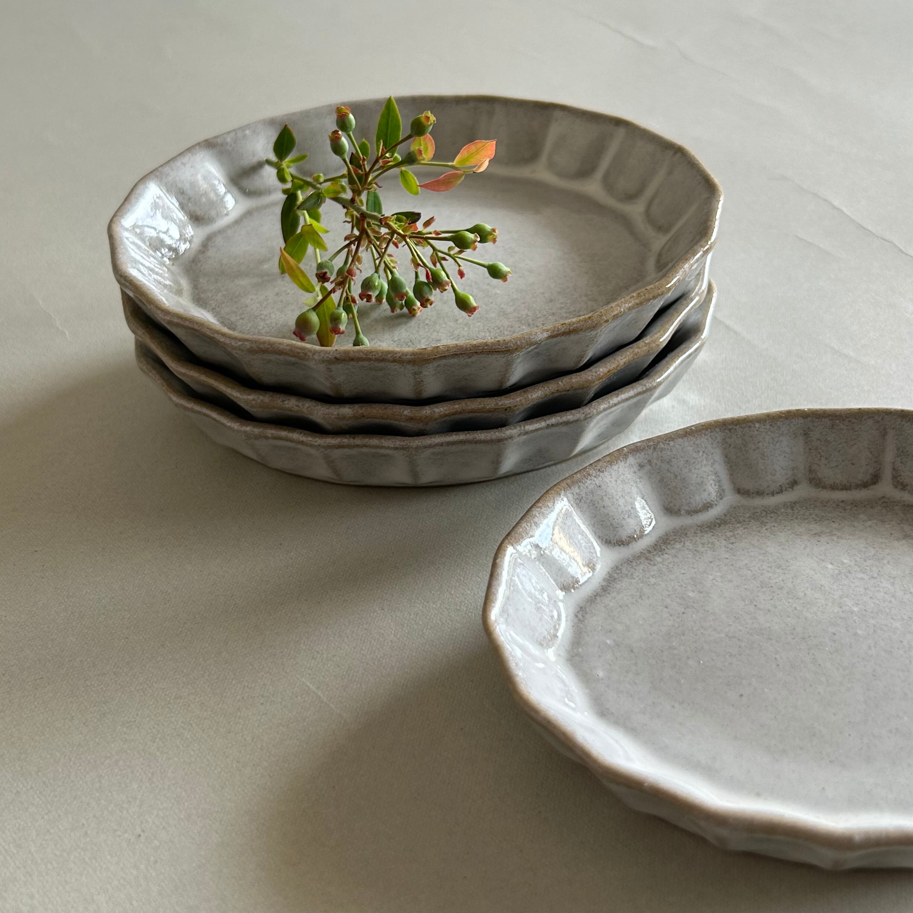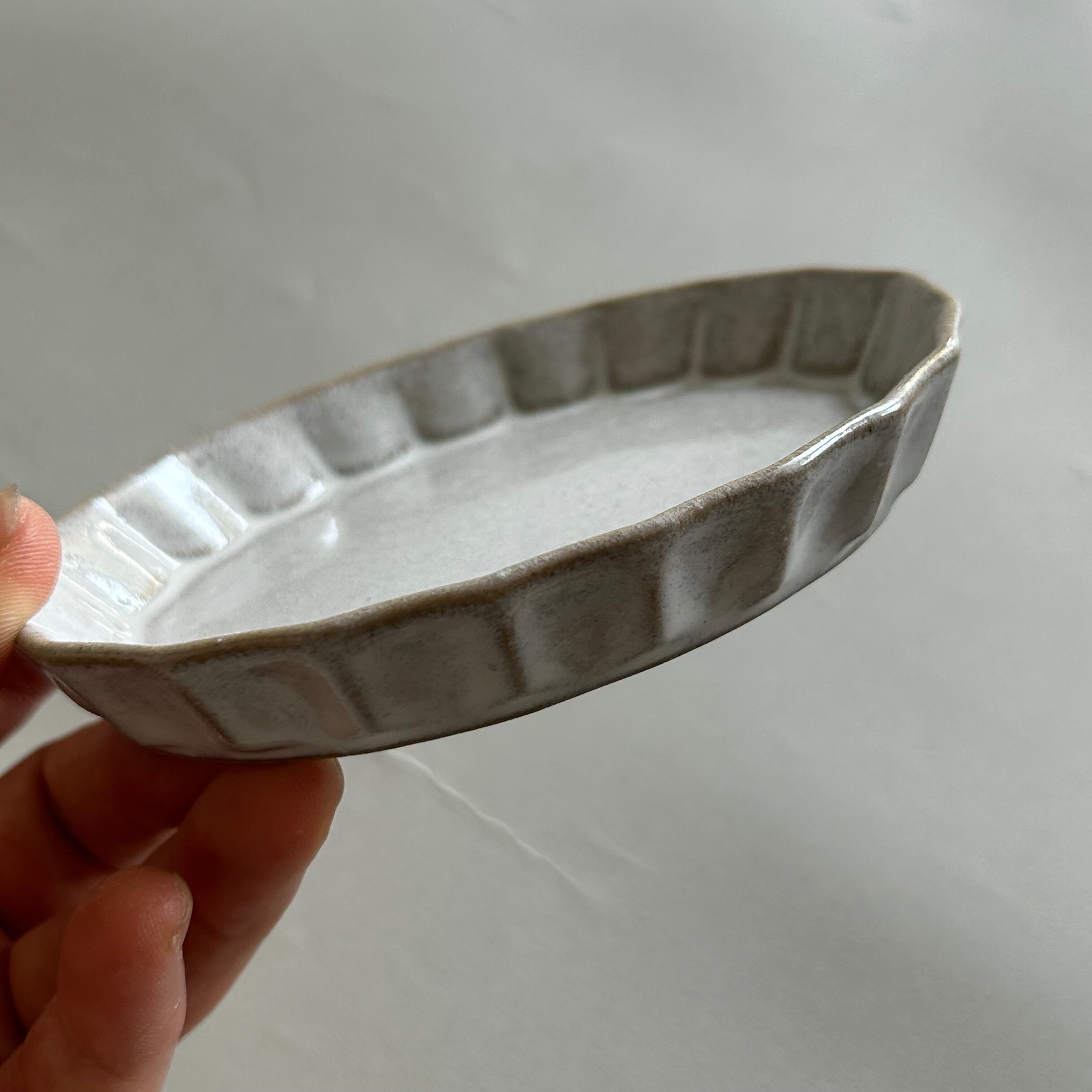【AXCIS】プリーツ楕円小皿 ベージュ